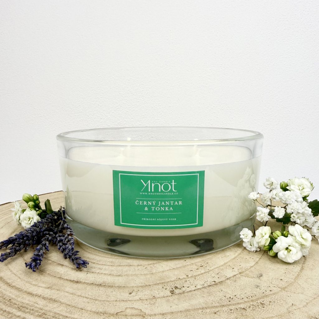 Velká sójová svíčka - Černý jantar & tonka