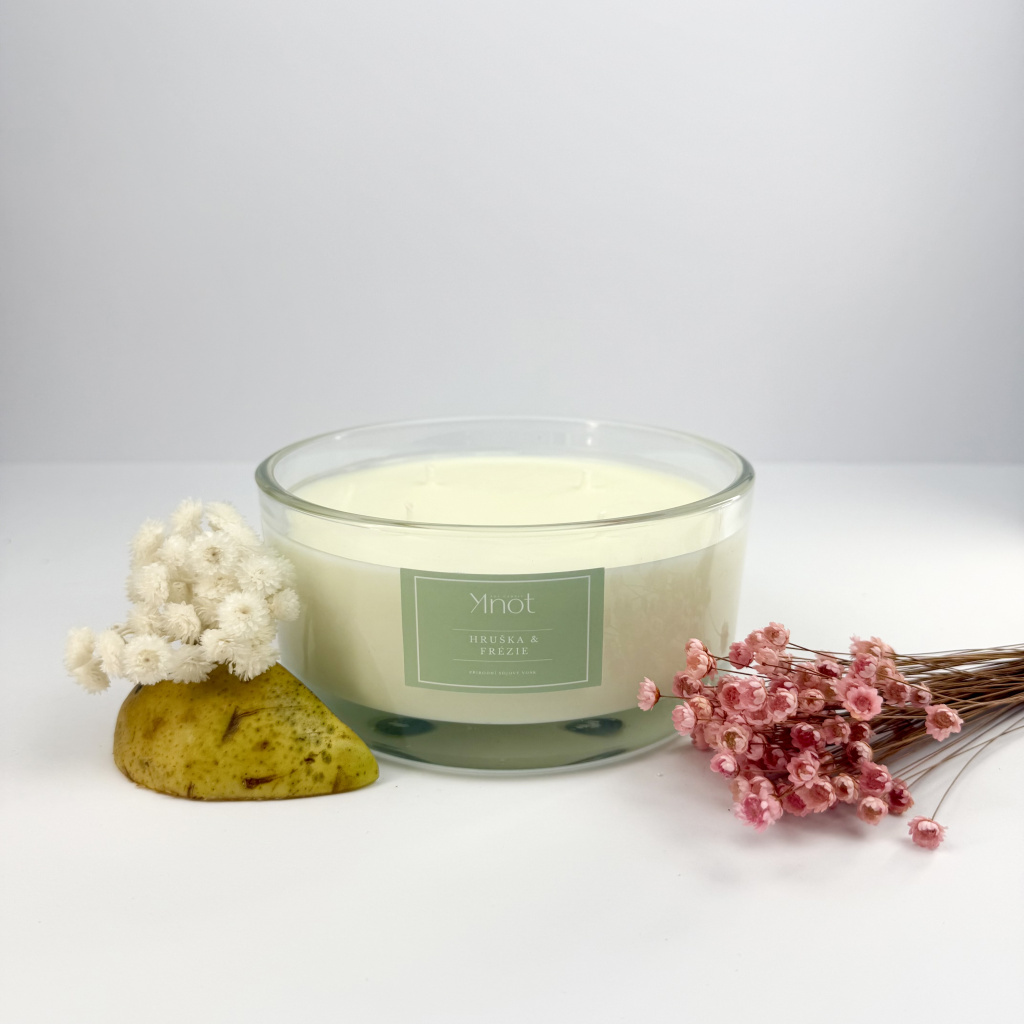Velká sójová svíčka - Hruška & Frézie